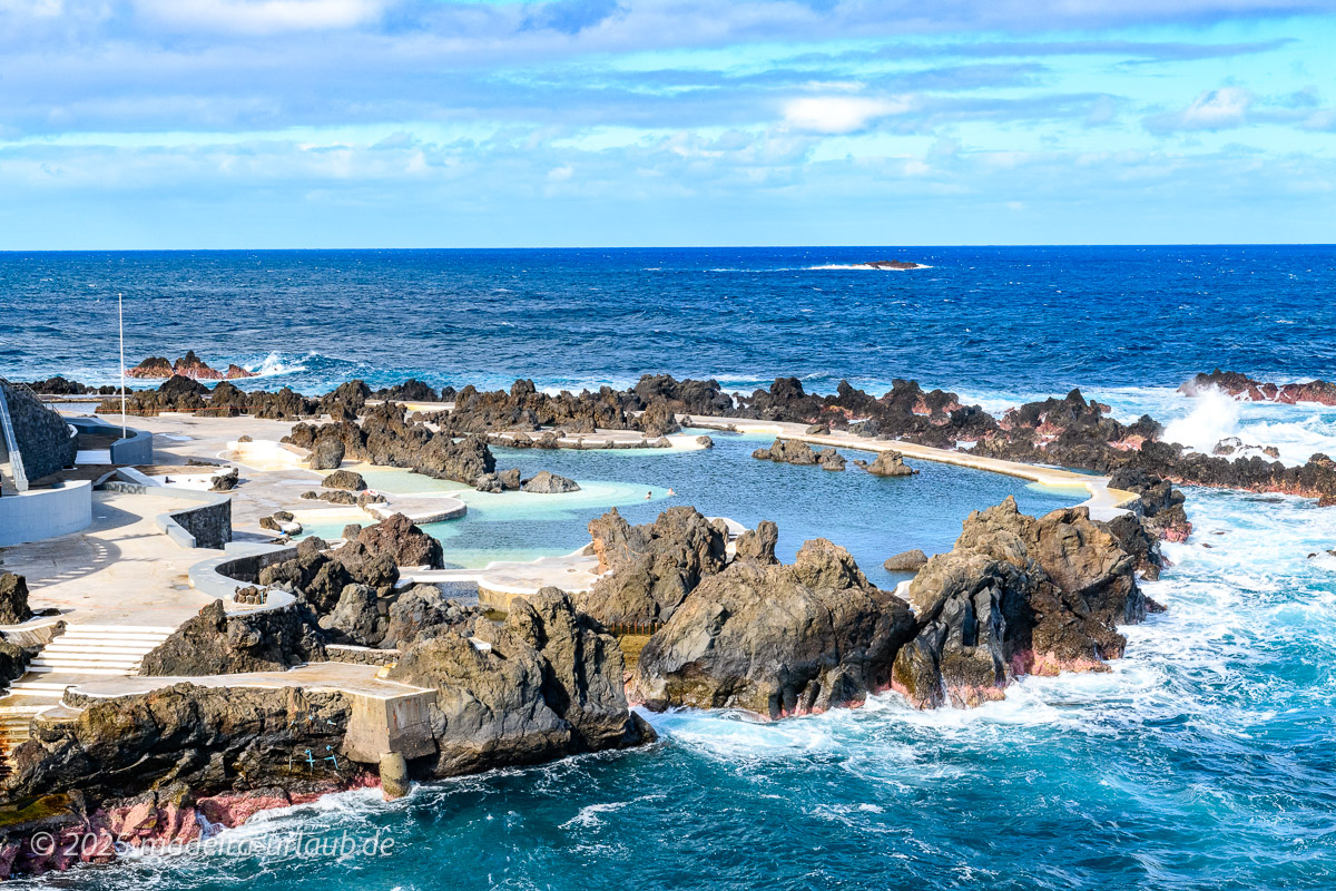 Ein zentrales Highlight sind die natürlichen Meerwasserschwimmbecken von Porto Moniz, die zu den bekanntesten Attraktionen der gesamten Insel gehören. Diese Becken wurden über Jahrtausende hinweg durch erkaltete Lava geformt und sind heute so gestaltet, dass Atlantikwasser kontinuierlich hineinströmt. Dadurch entsteht ein einzigartiges Badeerlebnis in kristallklarem Salzwasser, geschützt vor der Brandung, aber dennoch in direktem Kontakt mit dem offenen Ozean. Besonders an sonnigen Tagen bieten die natürlichen Pools spektakuläre Ausblicke auf das Meer und die dunklen Basaltformationen, die einen starken Kontrast zum tiefen Blau des Atlantiks bilden. Für viele Besucher sind diese Naturschwimmbecken ein Höhepunkt ihres Madeira-Urlaubs, da sie Naturerlebnis und Erholung auf besondere Weise verbinden.