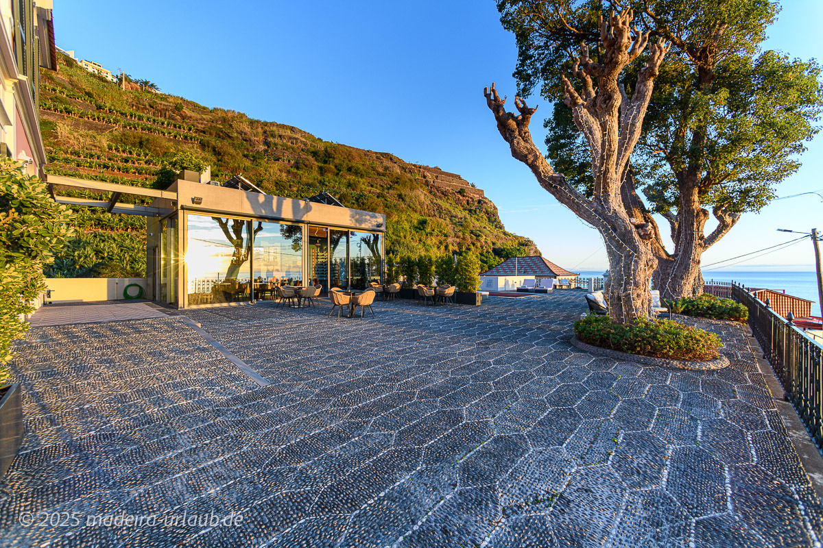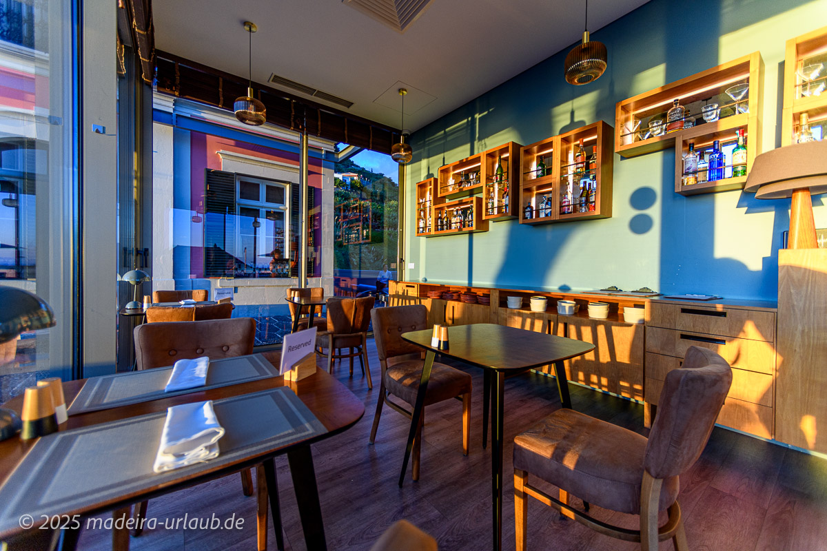 Im hoteleigenen Restaurant beginnt der Tag mit einem regional inspirierten Frühstück; nachmittags lädt eine „afternoon tea“-Atmosphäre zum Verweilen ein. Abends setzt die Küche auf frische, lokale Zutaten — kleine, durchdachte Menüs, die zu einem Glas Madeirawine oder einem Signature-Cocktail auf der Terrasse passen. Das kulinarische Angebot ist bewusst intim gestaltet, passend zur Gesamtästhetik des Hauses.