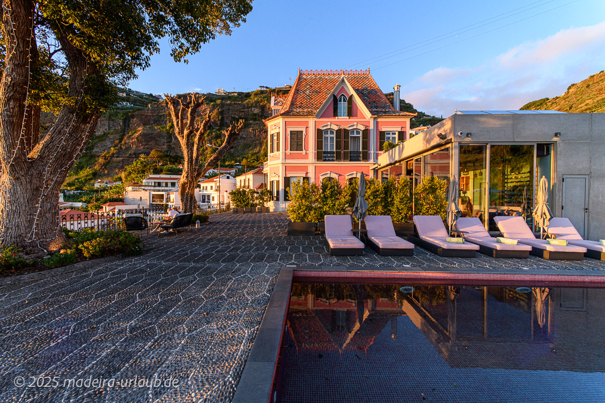 Boutique-Palacete von 1905 in Ponta do Sol auf Madeira mit rosa Fassaden, Atlantikblick, intime Pool-Terrasse und ein Interieur, das Historie mit modernem Design verbindet — ideal für Paare, Genießer und Kulturreisende.