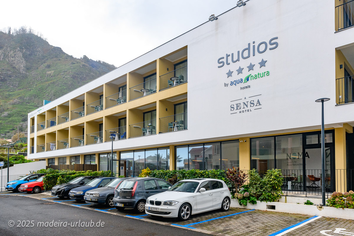 Die Studios by Aqua Natura Hotels sind zentral in Porto Moniz - unweit des Aqua Natura Madeira Hotels. Die Gäste können kostenfrei den Wellness Bereich des Hotels - Massagen, Whirlpool, Sauna Infinitypool auf der Dachterrasse mit super genialen Ausblick auf den Atlantik - nutzen. Ebenso wird das Frühstück im Hotel mit Blick auf das Meer bereit gestellt. Alle Studios haben eine Kitchenette und eines ist größer und bietet für Familien mit 5 Personen Unterkunft. Ein Supermarkt ist wenige Meter entfernt ebenso wie das Zentrum von Porto Moniz und das Naturschwimmbecken. In der Lobby befindet sich auch ein Cowork Bereich "NOMA" mit kostenfreiem WLAN und Stromanschluss an jedem Tisch - ideal für digitale Nomaden, die remote arbeiten wollen.